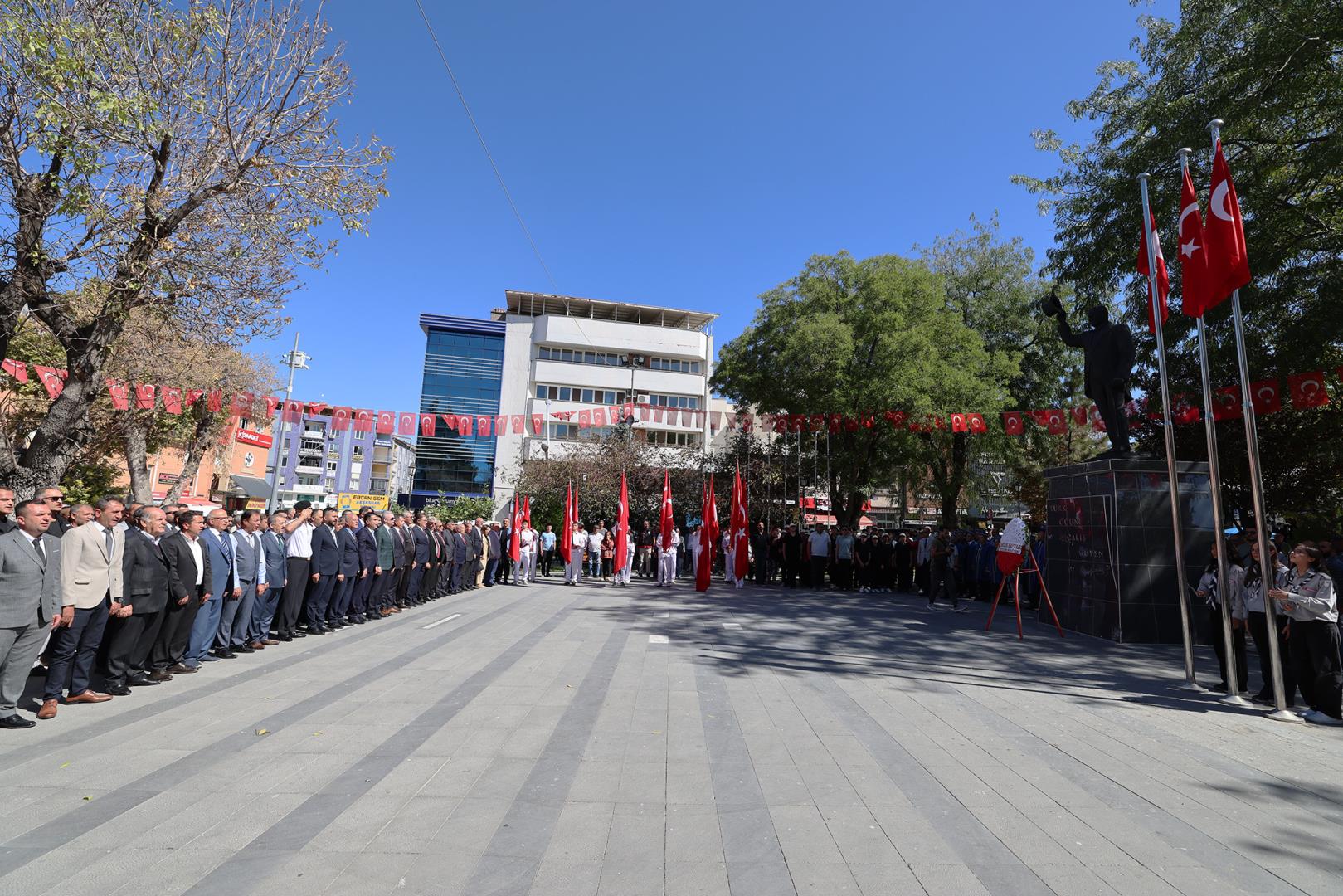Tören, Cumhuriyet Parkı’ndaki Atatürk anıtına çelenk sunumuyla başladı. Karaman Valisi Mehmet Fatih Çiçekli, Karaman Belediye Başkanı Savaş Kalaycı, Milliyetçi Hareket Partisi İl Başkanı Muhammet Mustafa Gözel, Ticaret İl Müdürü Adem Özcan, Kurum Müdürleri ve Oda Başkanlarının hazır bulunduğu törende; saygı duruşu ve İstiklal Marşı’nın okunmasının ardından, Türk Dili Parkı’nda Ahilik Pilavı ikram edildi.