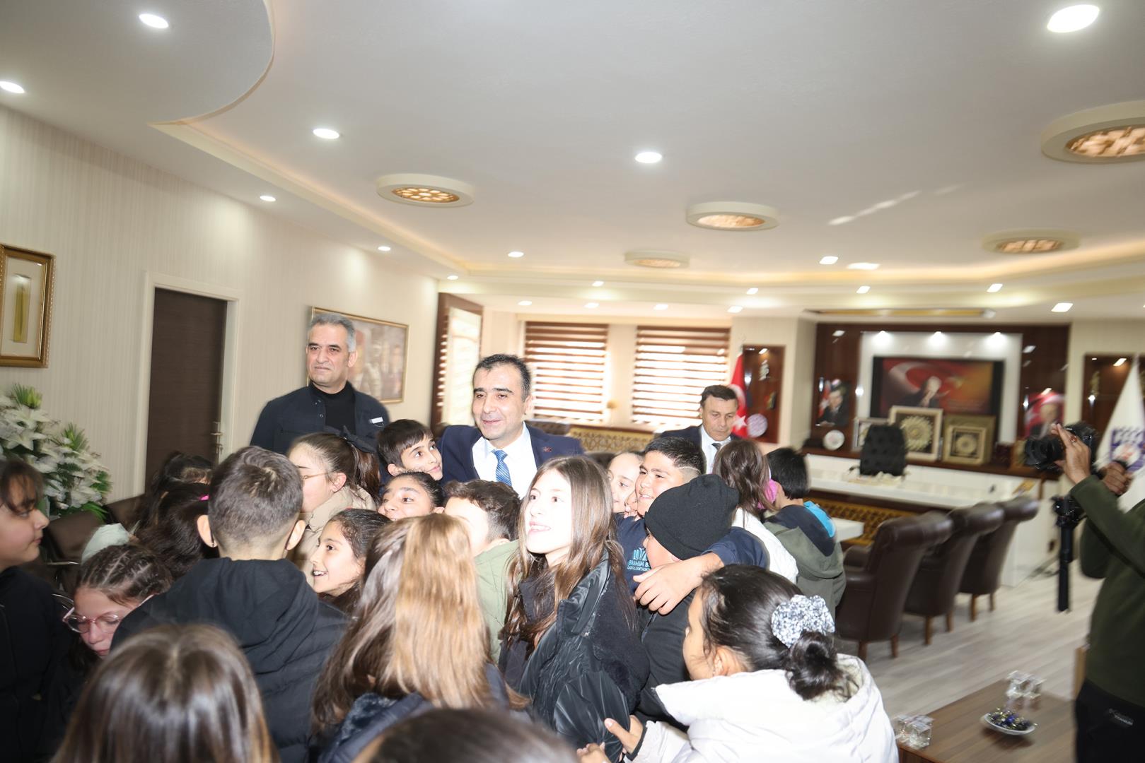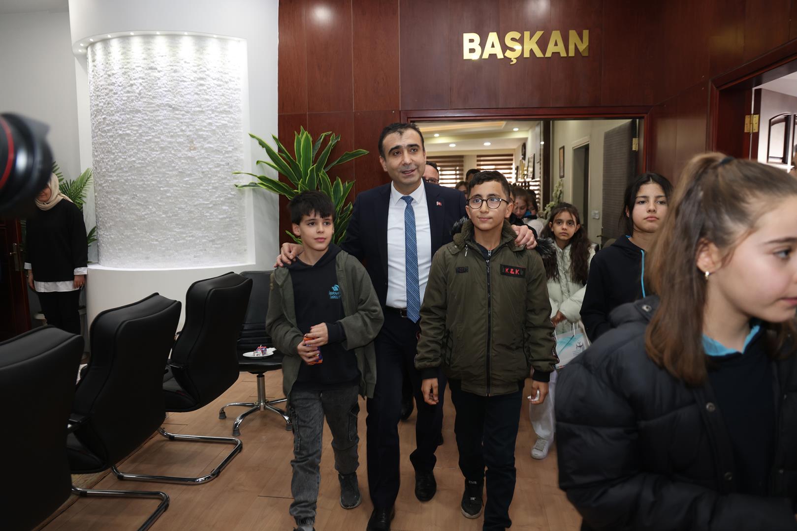Ziyaret kapsamında Belediye Başkanı Savaş Kalaycı, öğrencileri makamında ağırlayarak bir süre sohbet etti. Çocukların büyük ilgisi ve sevgi gösterisi ile karşılaşan Başkan Kalaycı, öğrencilerin sorularını cevaplayarak istek ve düşüncelerini dinledi. Ardından öğrencilerle birlikte belediye meclis salonunu gezen Belediye Başkanı Savaş Kalaycı, yerel yönetimlerin işleyişi ve belediyenin yürüttüğü çalışmalar hakkında bilgi verdi.