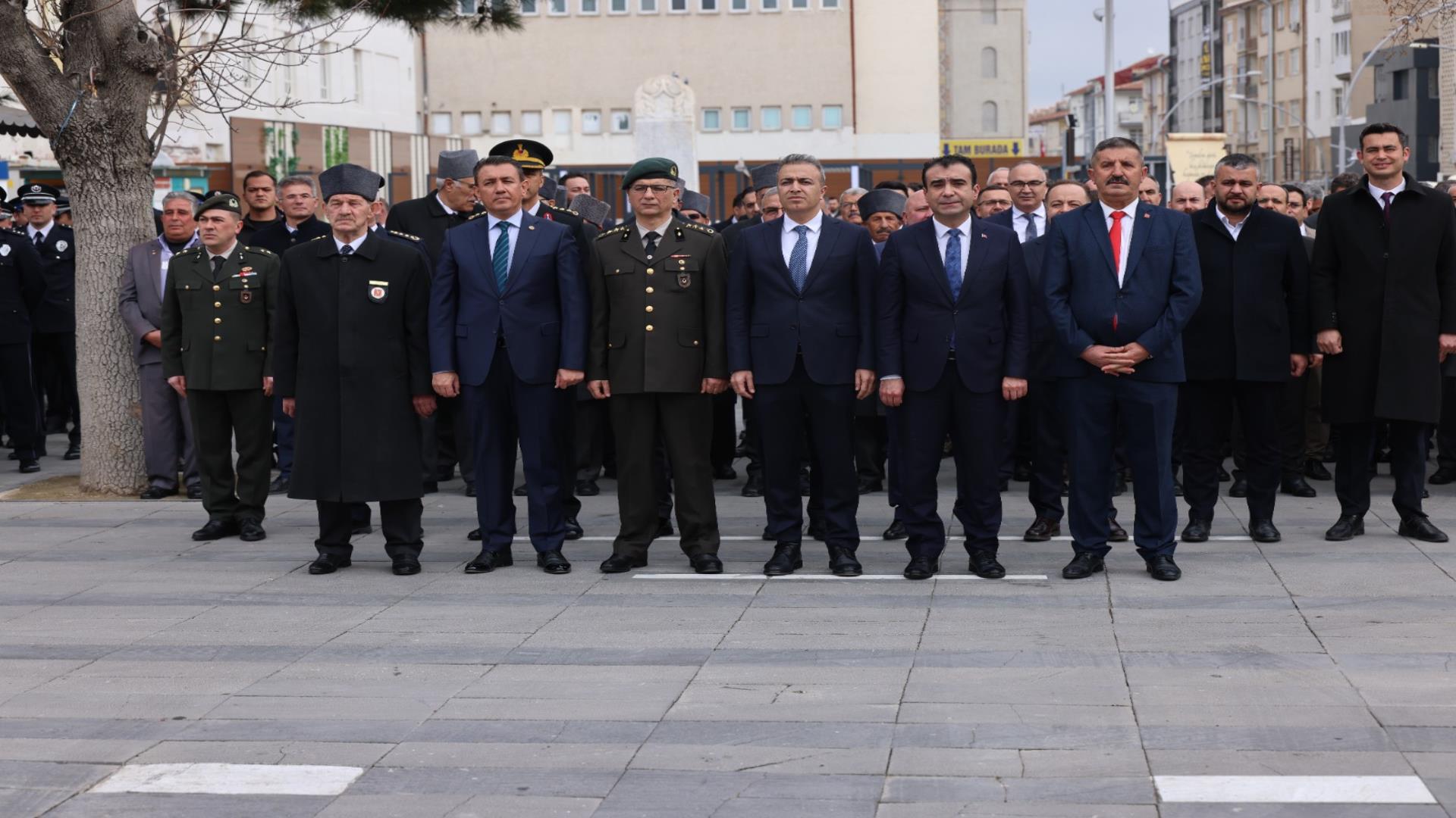 18 Mart programı, saat 10.00’da Cumhuriyet Parkı’ndaki Atatürk anıtına çelenklerin sunulmasıyla başladı. Saygı duruşu ve İstiklal Marşı’nın okunmasıyla devam eden törene; Karaman Valisi Hayrettin Çiçek, Karaman Belediye Başkanı Savaş Kalaycı, Garnizon Komutanı Personel Albay Hacı Vehbi Şahbaz, KMÜ Rektörü Prof. Dr. Mehmet Gavgalı, MHP Karaman İl Başkanı Muhammet Mustafa Gözel, Protokol üyeleri, Askeri erkân, Gaziler, Şehit yakınları ve vatandaşlar katıldı.
