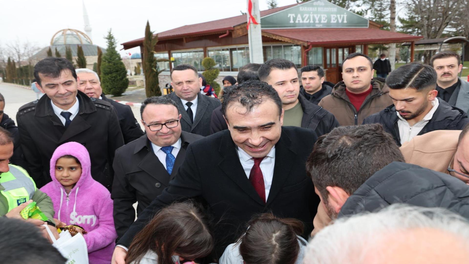Karaman Belediye Başkanı Savaş Kalaycı, arife günü düzenlenen programda şehitliği ziyaret etti ve ardından kabir ziyaretine gelen vatandaşlarla bayramlaştı.