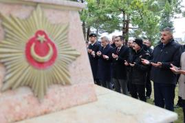 Ramazan Bayramı dolayısıyla Şehir mezarlığında bulunan şehitlikte bir ziyaret programı tertip edildi. Kur'an-ı Kerim tilavetiyle başlayan ziyarette; okunan duanın ardından protokol üyeleri tarafından şehit mezarlarına su dökülerek karanfil bırakıldı.
