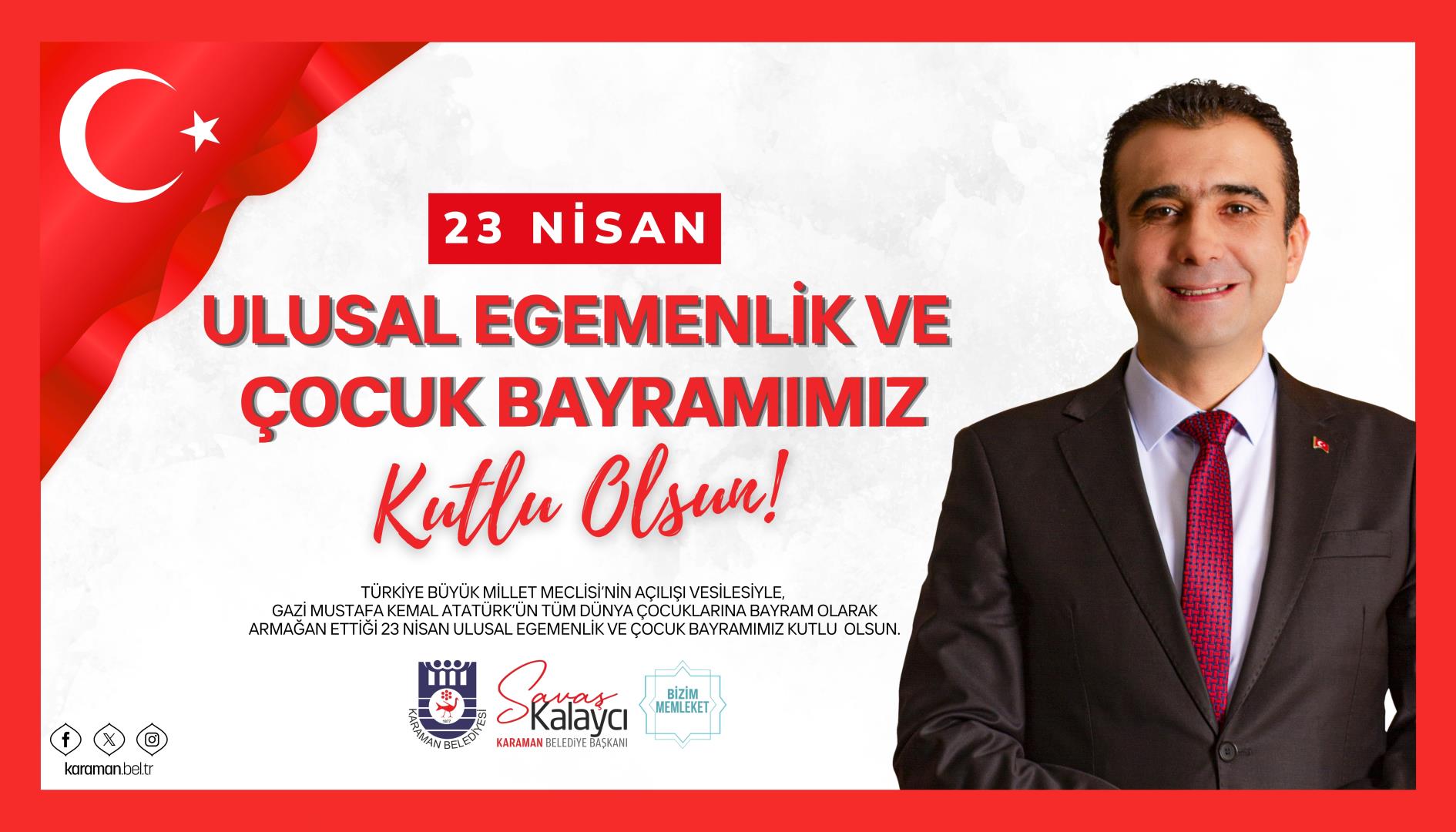 Karaman Belediye Başkanı Savaş Kalaycı, Türkiye Büyük Millet Meclisi'nin 106. kuruluş yıldönümü ve 23 Nisan Ulusal Egemenlik ve Çocuk Bayramı dolayısıyla bir kutlama mesajı yayınladı.