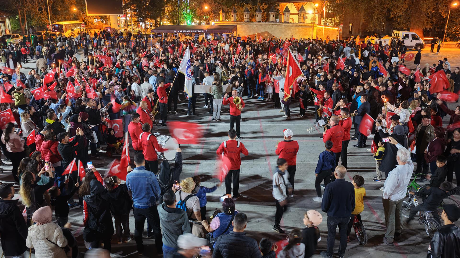 Cumhuriyet Parkı'nda başlayıp Aktekke 15 Temmuz Demokrasi Meydanı’nda sona eren Cumhuriyet Yürüyüşü; Karaman Valisi Mehmet Fatih Çiçekli ve Karaman Belediye Başkanı Savaş Kalaycı’nın da yer aldığı yoğun bir katılımla yapıldı. Ellerinde Türk bayrakları ve meşaleler ile yürüyüşe katılan vatandaşlar, marşlar eşliğinde İsmetpaşa Caddesi üzerinden Aktekke 15 Temmuz Demokrasi Meydanı’na coşkulu bir şekilde ulaştı.
