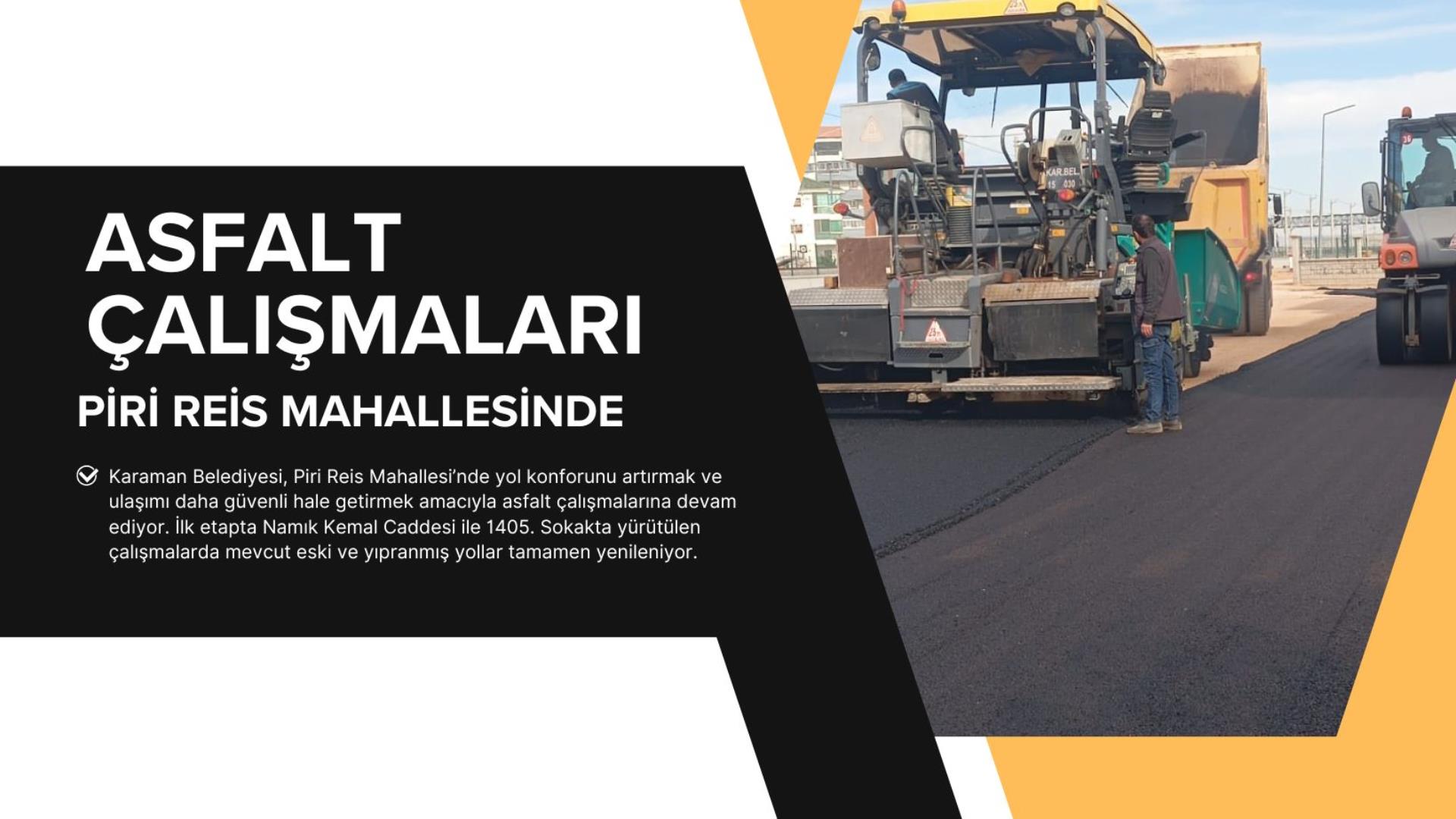 Karaman Belediyesi, Piri Reis Mahallesi’nde yol konforunu artırmak ve ulaşımı daha güvenli hale getirmek amacıyla asfalt çalışmalarına devam ediyor. İlk etapta Namık Kemal Caddesi ile 1405. Sokakta yürütülen çalışmalarda mevcut eski ve yıpranmış yollar tamamen yenileniyor.