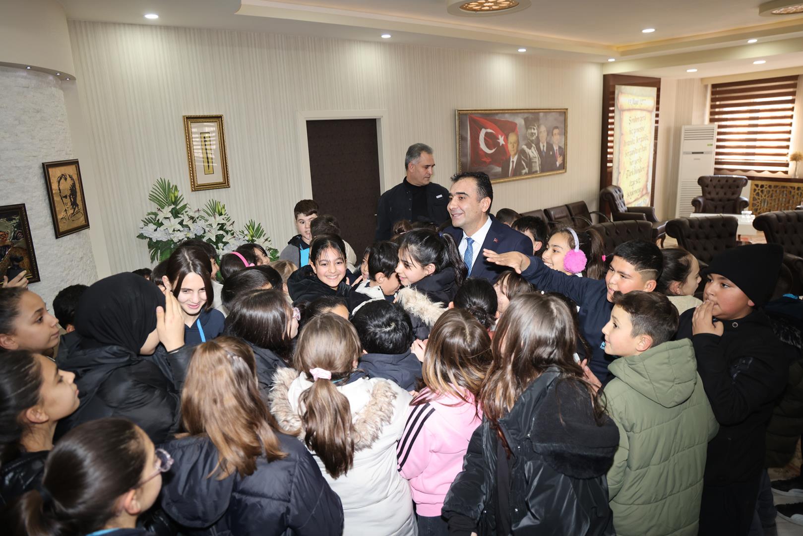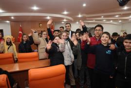 Ziyaret kapsamında Belediye Başkanı Savaş Kalaycı, öğrencileri makamında ağırlayarak bir süre sohbet etti. Çocukların büyük ilgisi ve sevgi gösterisi ile karşılaşan Başkan Kalaycı, öğrencilerin sorularını cevaplayarak istek ve düşüncelerini dinledi. Ardından öğrencilerle birlikte belediye meclis salonunu gezen Belediye Başkanı Savaş Kalaycı, yerel yönetimlerin işleyişi ve belediyenin yürüttüğü çalışmalar hakkında bilgi verdi.