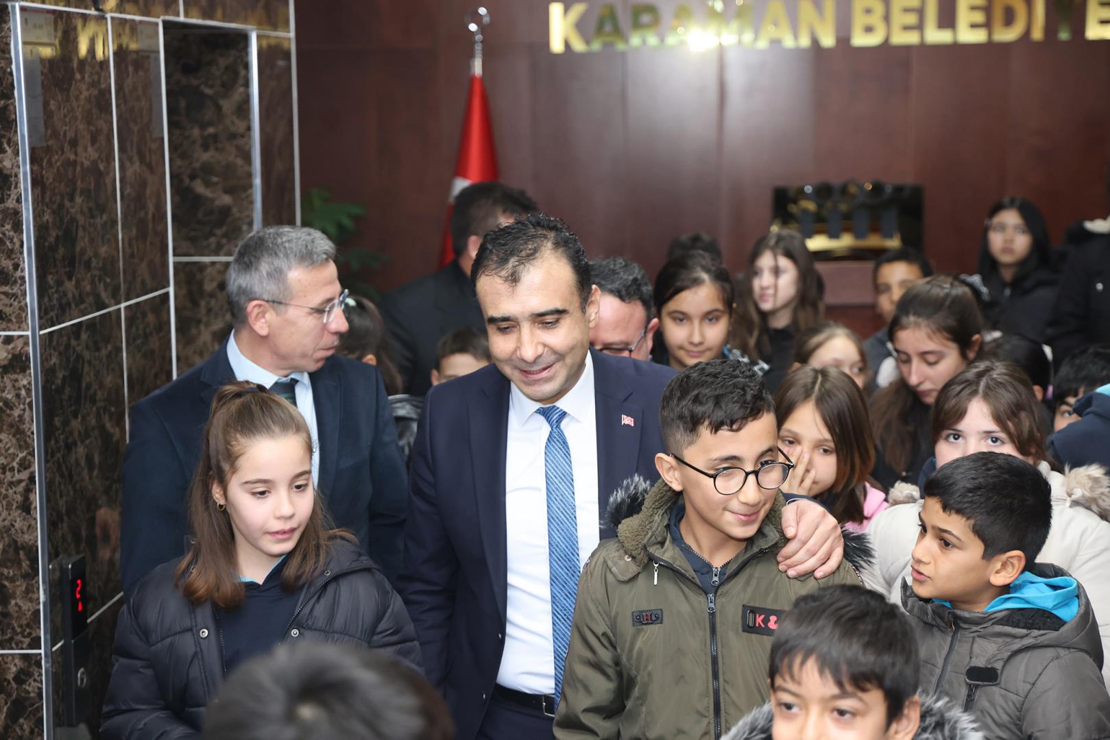 Karaman İbrahim Bey Ortaokulu 5, 6 ve 7. sınıf öğrencileri, Karaman Belediye Başkanı Savaş Kalaycı’yı makamında ziyaret etti. Okul temelli planlama etkinliği kapsamında gerçekleştirilen ziyarette öğrenciler, yerel yönetimlerin işleyişi hakkında bilgi edinme fırsatı buldu.