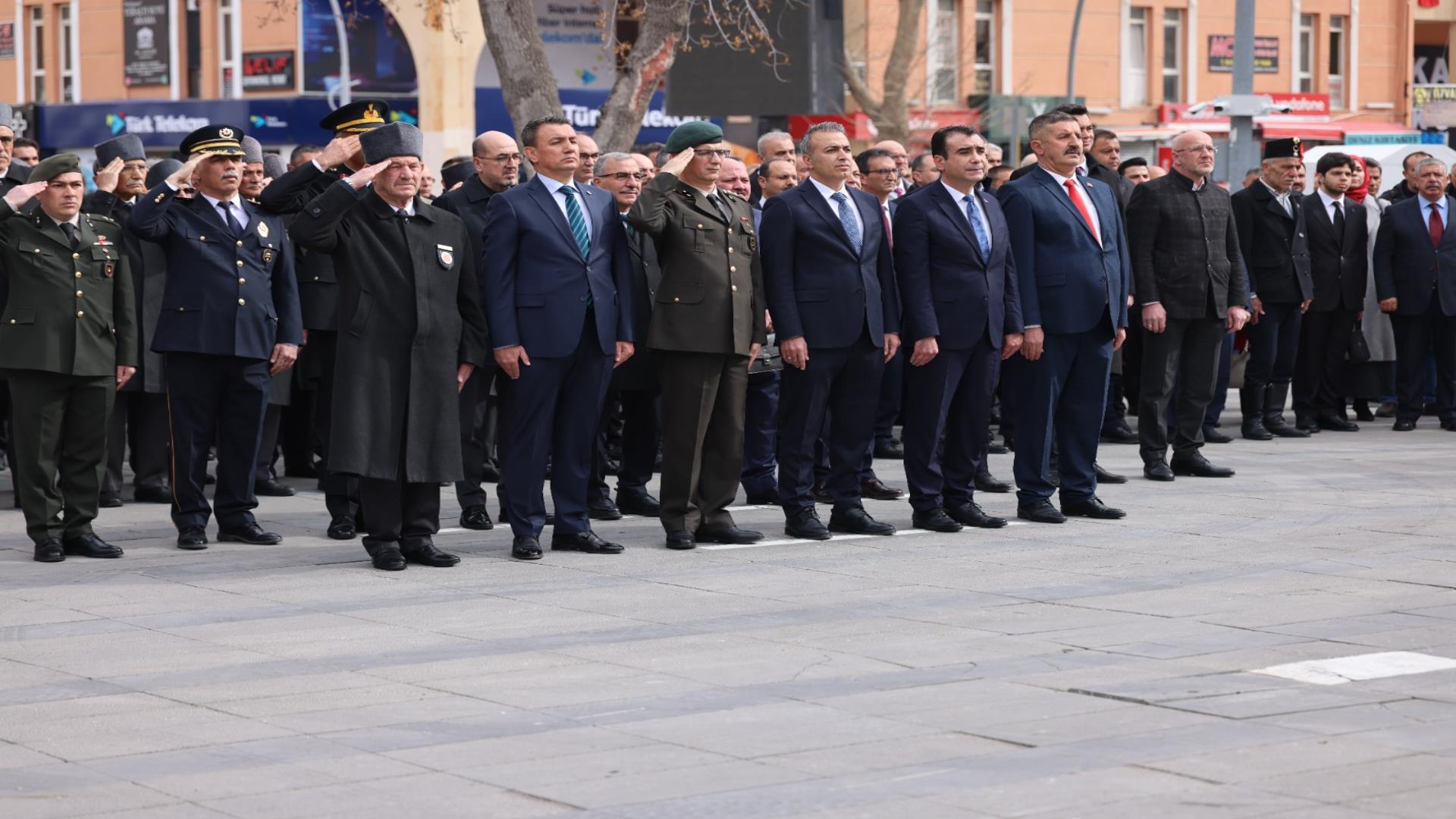 18 Mart programı, saat 10.00’da Cumhuriyet Parkı’ndaki Atatürk anıtına çelenklerin sunulmasıyla başladı. Saygı duruşu ve İstiklal Marşı’nın okunmasıyla devam eden törene; Karaman Valisi Hayrettin Çiçek, Karaman Belediye Başkanı Savaş Kalaycı, Garnizon Komutanı Personel Albay Hacı Vehbi Şahbaz, KMÜ Rektörü Prof. Dr. Mehmet Gavgalı, MHP Karaman İl Başkanı Muhammet Mustafa Gözel, Protokol üyeleri, Askeri erkân, Gaziler, Şehit yakınları ve vatandaşlar katıldı.